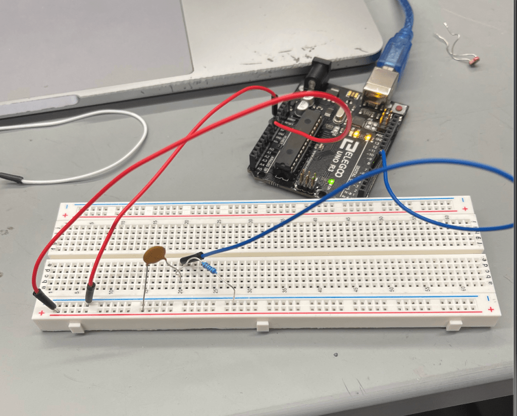 In the first portion of the lab, I began to make upgrades to the heartbeat sensor. First, I removed background noise by recording the initial value of the sensor in the setup portion of the code. I considered this as background noise and subtracted it from the calculation, providing a steady value of 0 when my finger wasn’t in the sensor. Next, I actually calculated the heartbeat and change in heartbeat and utilized the Kalman filter below. For the baseline value, I calculated my actual heartbeat at different rates and applied a ratio of the value to my heartbeat, as values were initially around 600 (although change in heartbeat was always accurate, and the more relevant portion of the device). I maintained consistency of lighting environment to mitigate the effects of any noise. If the device was subject to different environments, I would’ve built a cover around the actual filter to mitigate noise, but that was not necessary here.